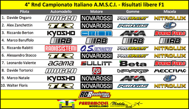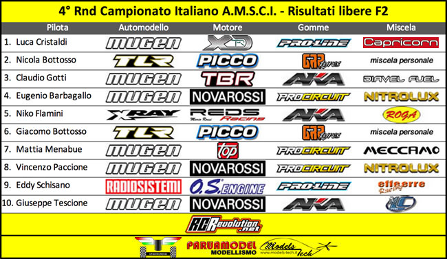 Dopo i primi cinque round di prove libere si è dato il via al sesto ed al settimo round sempre da dieci minuti ma con gli ultimi cinque cronometrati. Concluse le prove libere Davide Ongaro è in cima alla classifica nella categoria F1. Nella categoria F2 Luca Cristaldi è ancora una volta il più veloce.