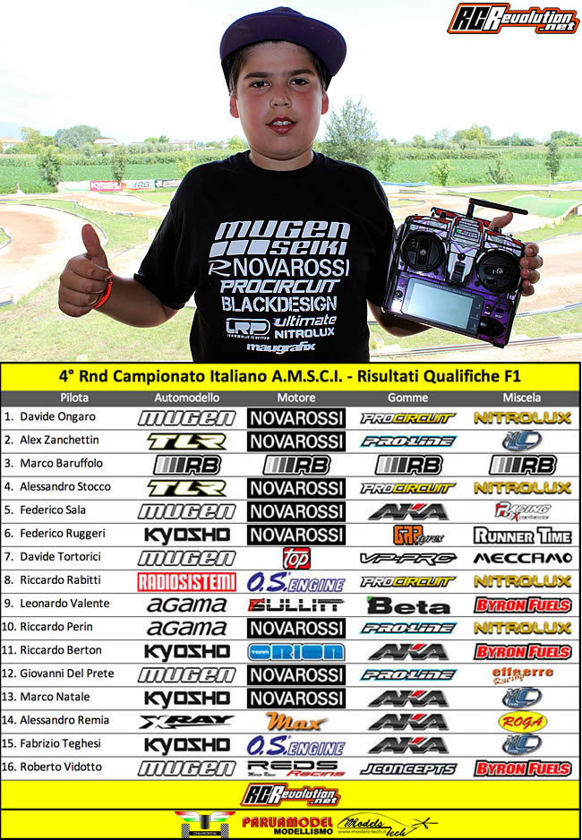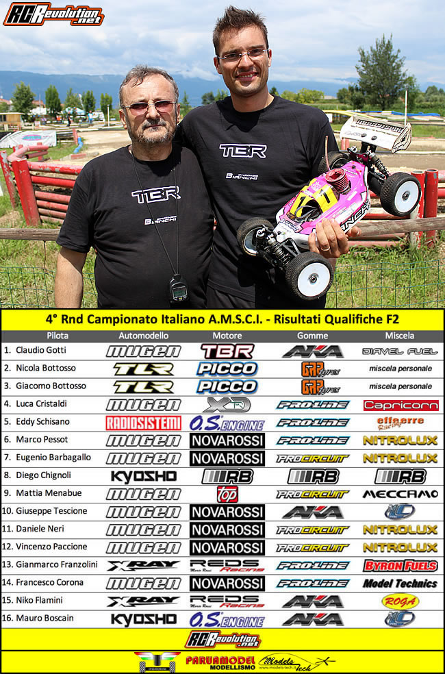 Al termine dei quattro round di qualifiche è il velocissimo pilota di casa Davide Ongaro a siglare la TQ nella categoria F1. Nella F2 TQ per Claudio Gotti.