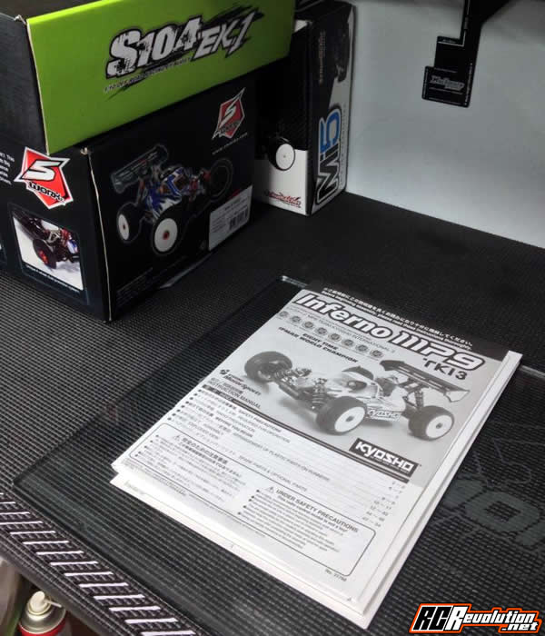 Appare ora sul profilo facebook di Hara un’altra foto in cui è ben in evidenza il manuale di montaggio di una Kyosho MP9 (…e giusto per confondere ancora le idee, sullo sfondo spunta anche una Sworkz…)
