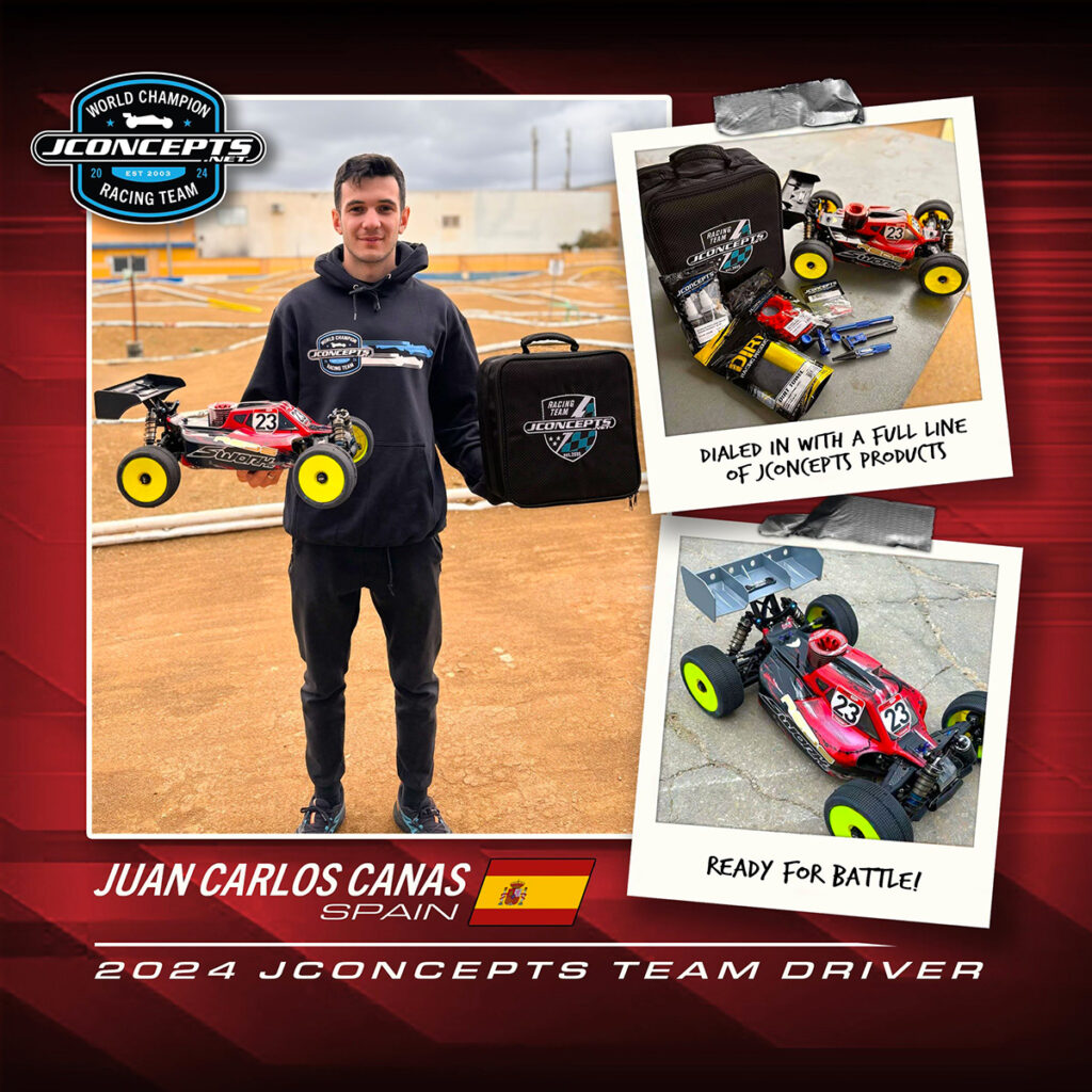 JConcepts ha annunciato l’ingresso nella propria squadre corse 2024 di Juan Carlos Canas. Il ventunenne pilota spagnolo è l’attuale campione europeo nelle classi Nitro ed E-Buggy ed è salito sul gradino più basso del podio al campionato del mondo IFMAR 2022. Con l’ex pilota dell’italiana HotRace tyres, l’americana JConcepts rafforza il proprio team in vista del prossimo campionato del mondo IFMAR 2024 che si svolgerà a settembre in San Paolo, in Brasile.