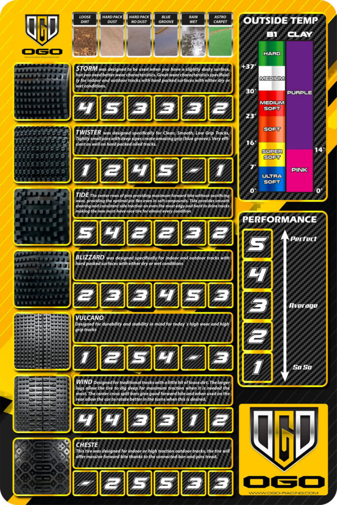 OGO Racing ha rilasciato la guida per utilizzare al meglio i disegni e le mescole delle proprie gomme in base al fondo del tracciato.