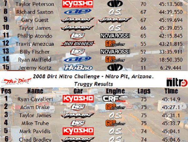 Il setup ufficiale della RC8 Team Associated di Ryan Cavalieri, vincitore del The Dirt Nitro Challenge 2008 Fonte: www.RC10.com