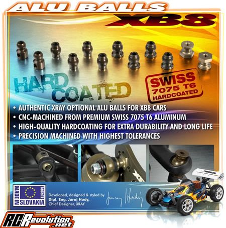XRay ha presentato le sfere uniball in ergal per il buggy XB8. Fonte: www.teamxray.com
